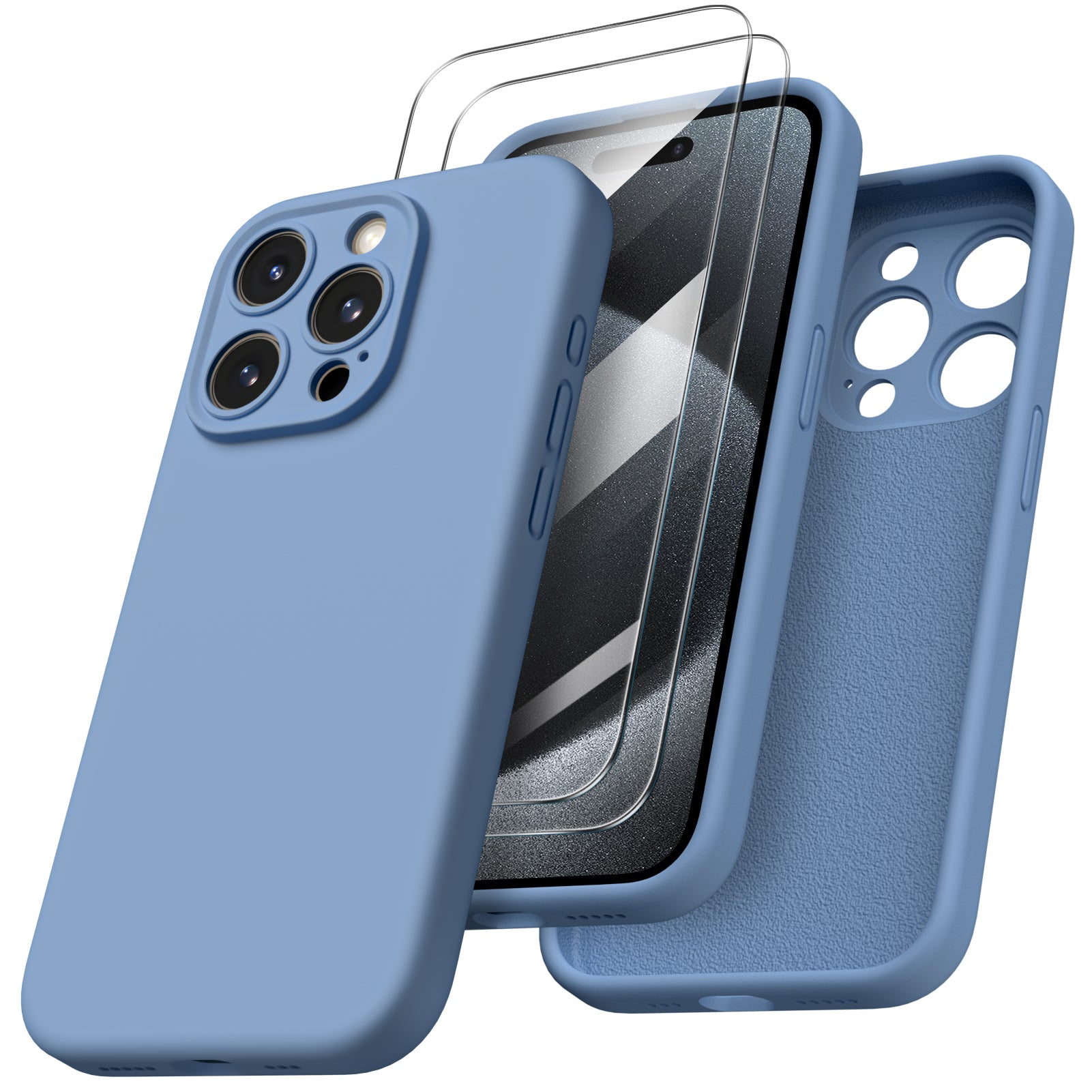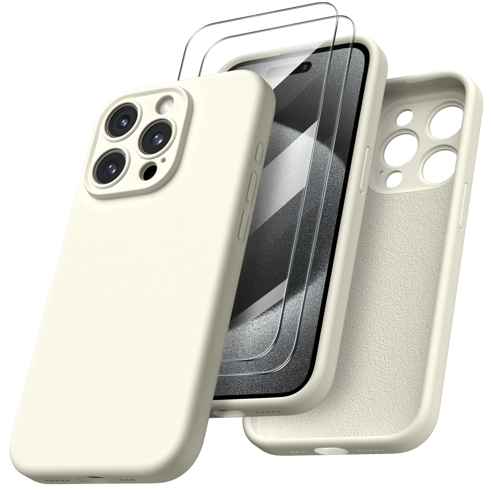 Liquid Silicone iPhone 15 Pro Case with Camera Protection and 2 Screen Protectors